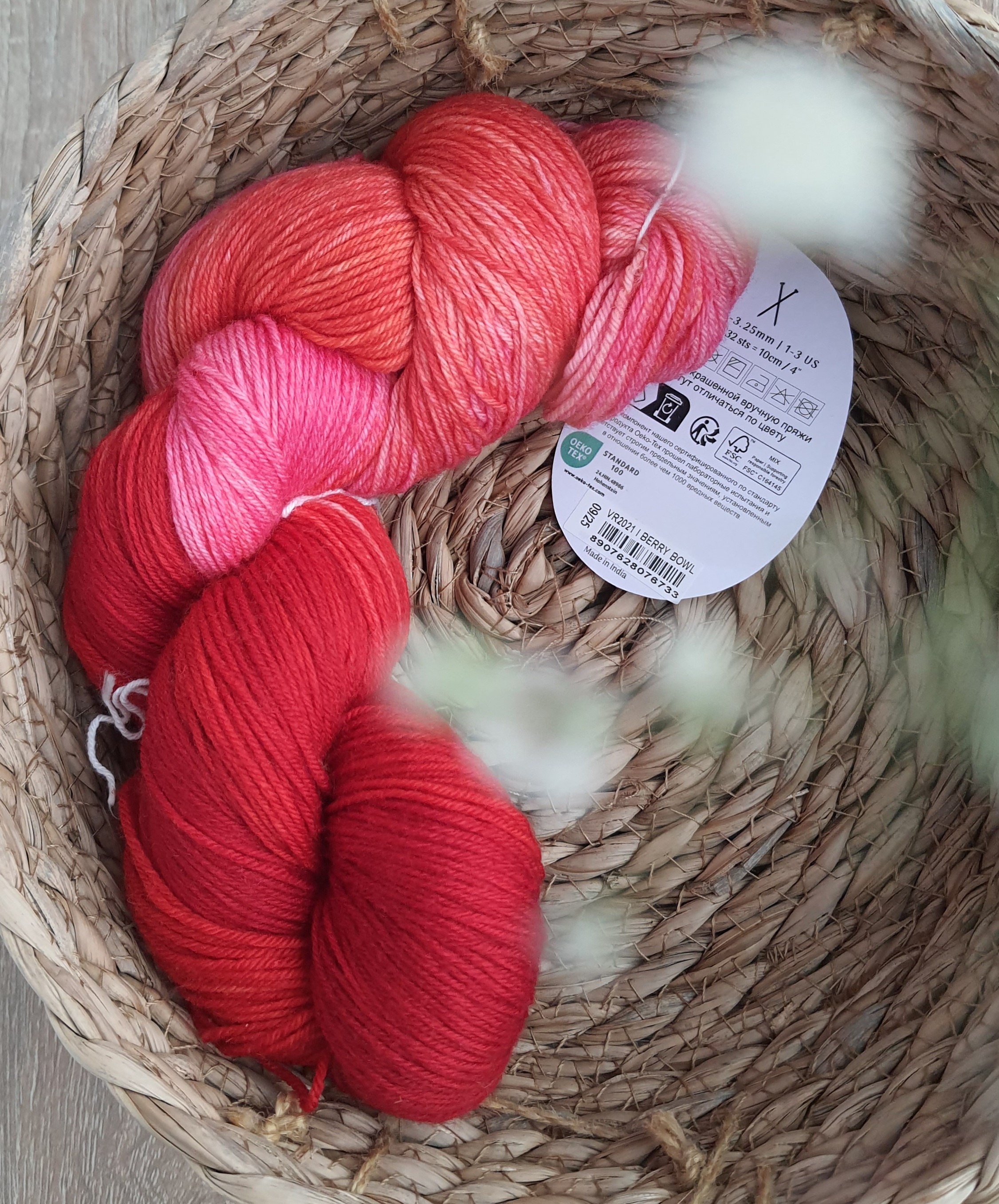 Мягчайшая мериносовая носочная пряжа, окрашенная в Индии.