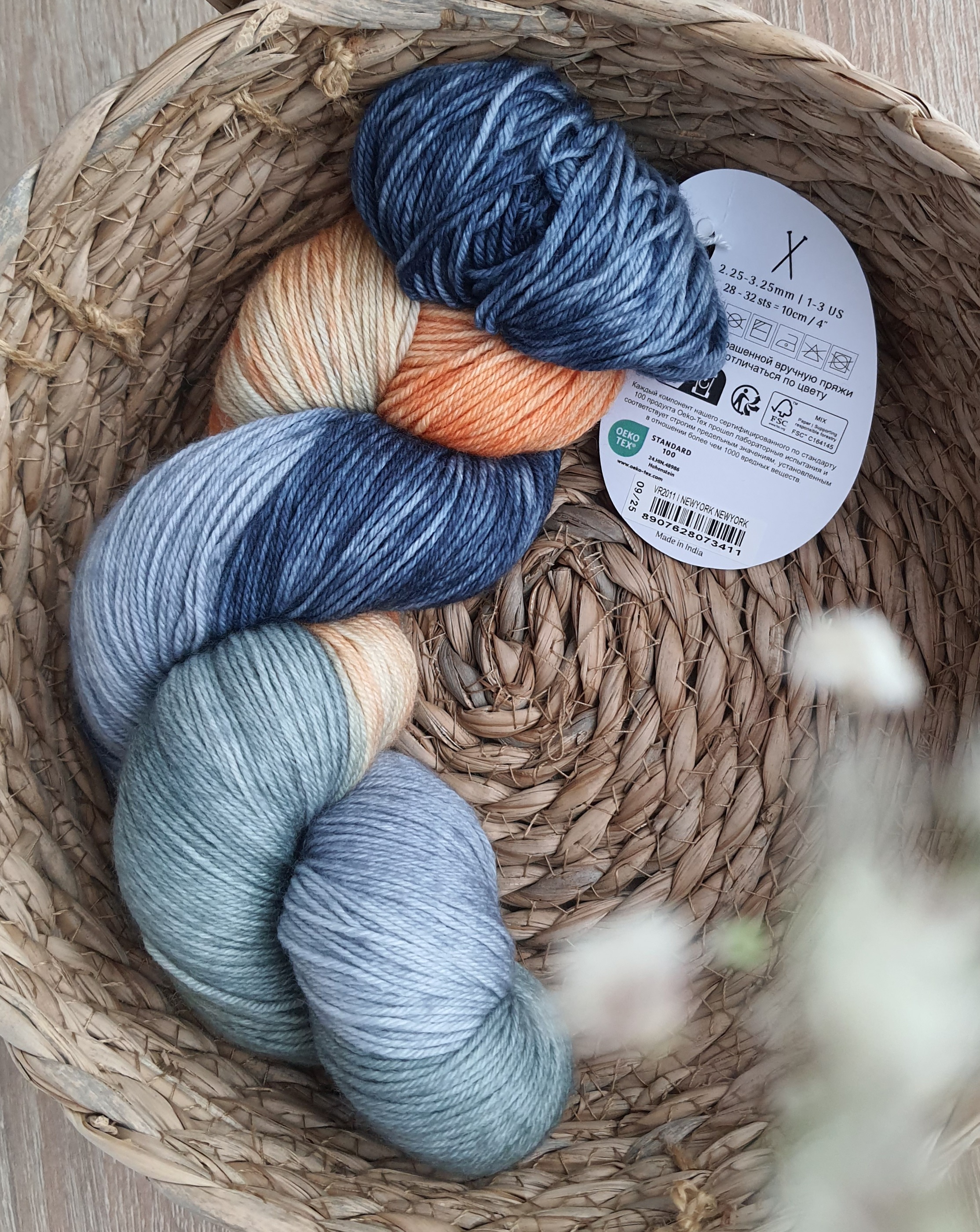 Мягчайшая мериносовая носочная пряжа, окрашенная в Индии.